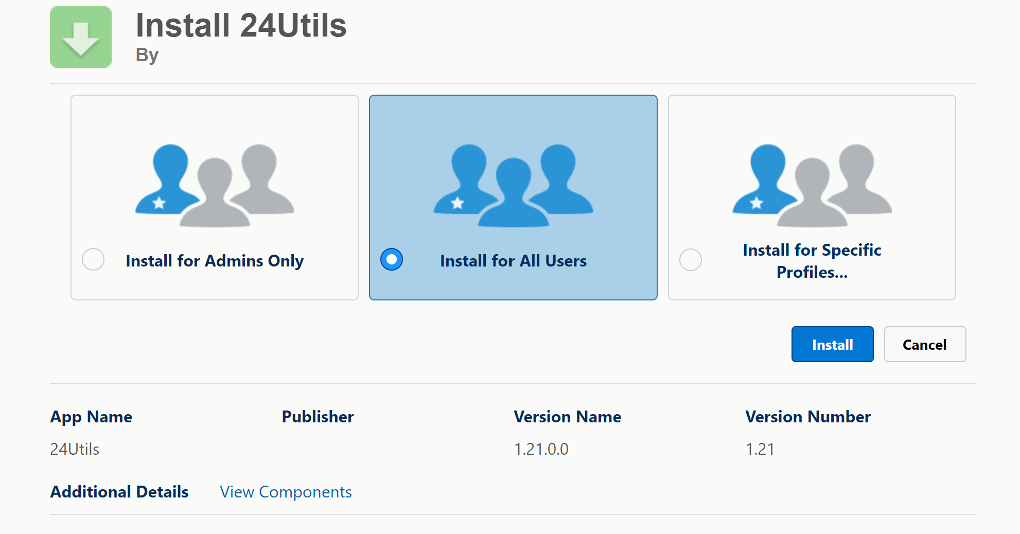 Once 24Utils is installed, proceed with the installation of the 24Planning package.
