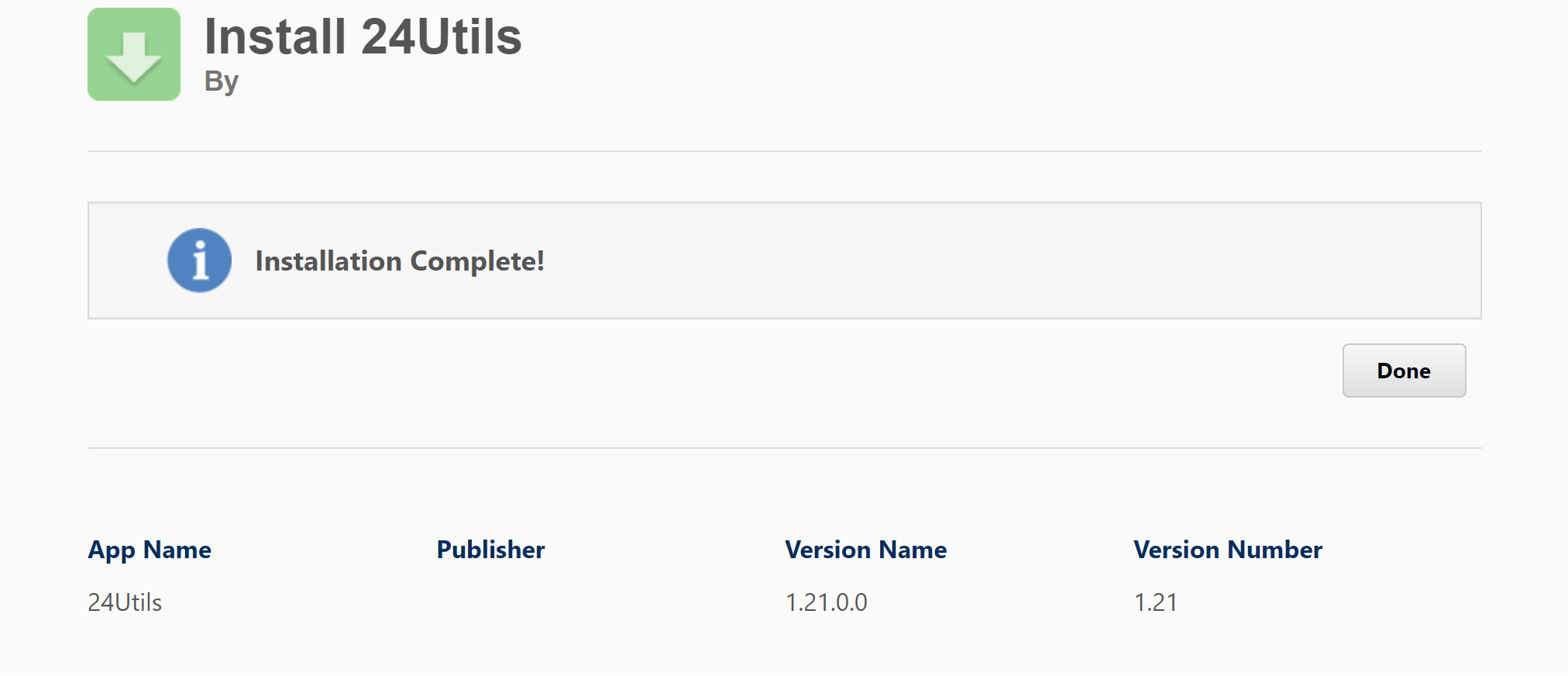 The installation can take a few minutes, once done you will receive a screen as follows. Click “Done”