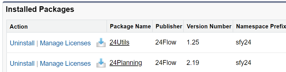 From Setup> Installed Packages, you select ‘Manage Licenses’ for the 24Planning app.