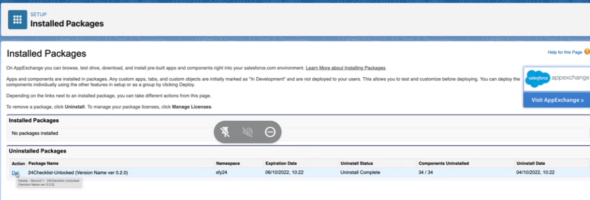 After uninstalling is done, you can delete the package by clicking “Del” next to the package name.