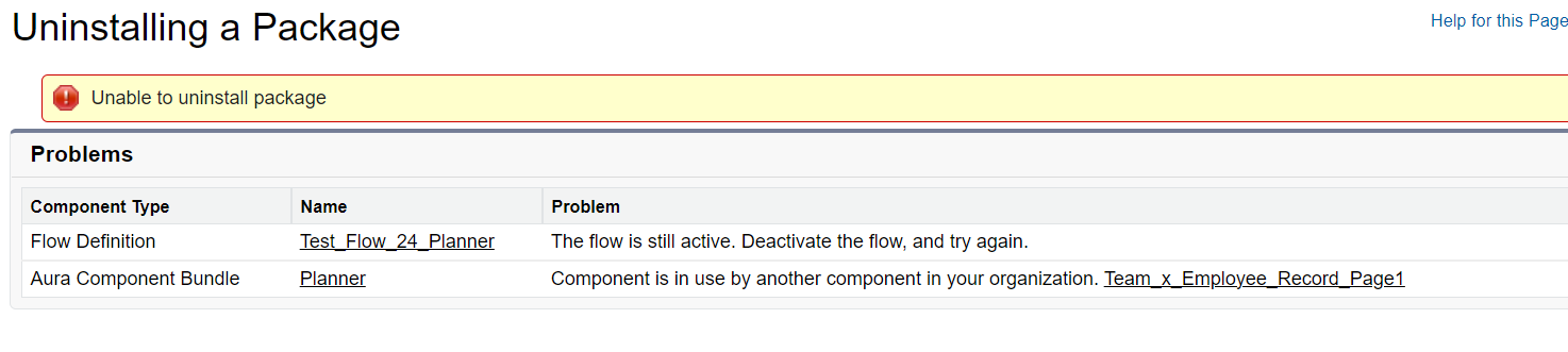 24Planning makes use of Flows. You will need to remove all 24Planning related flows, prior to uninstalling the package.