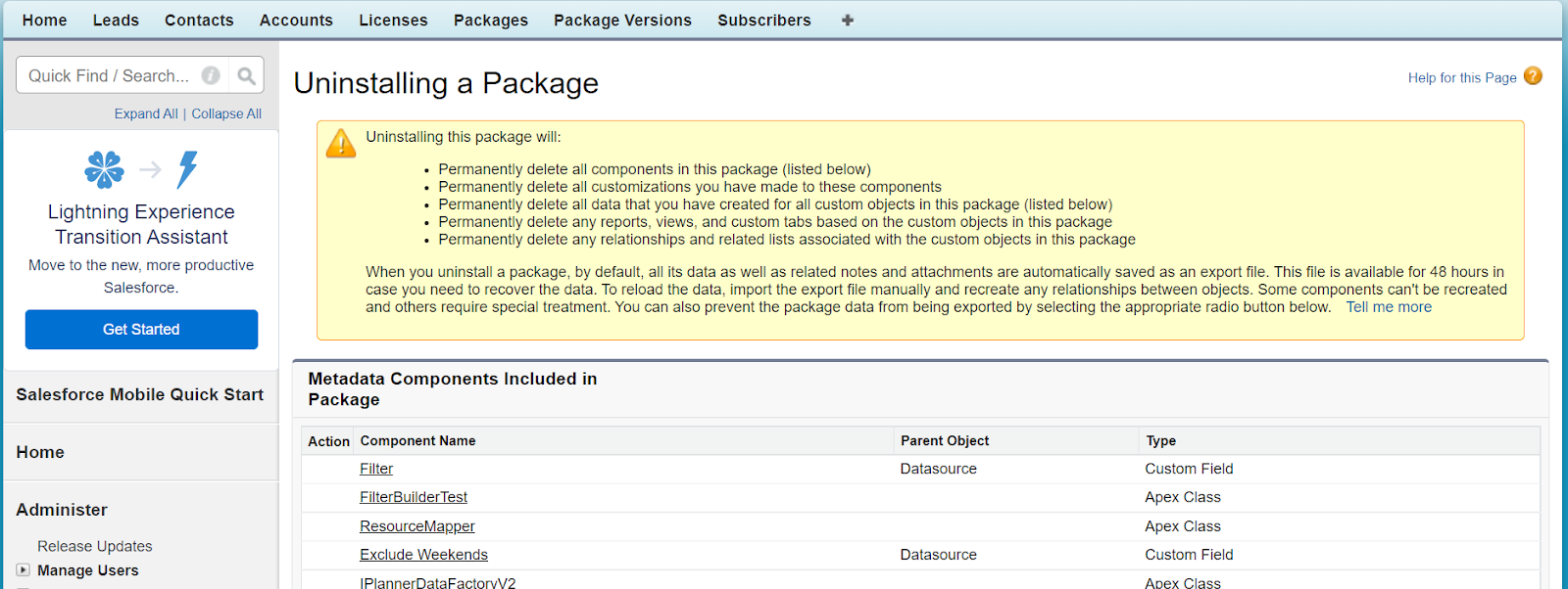 Uninstall Package